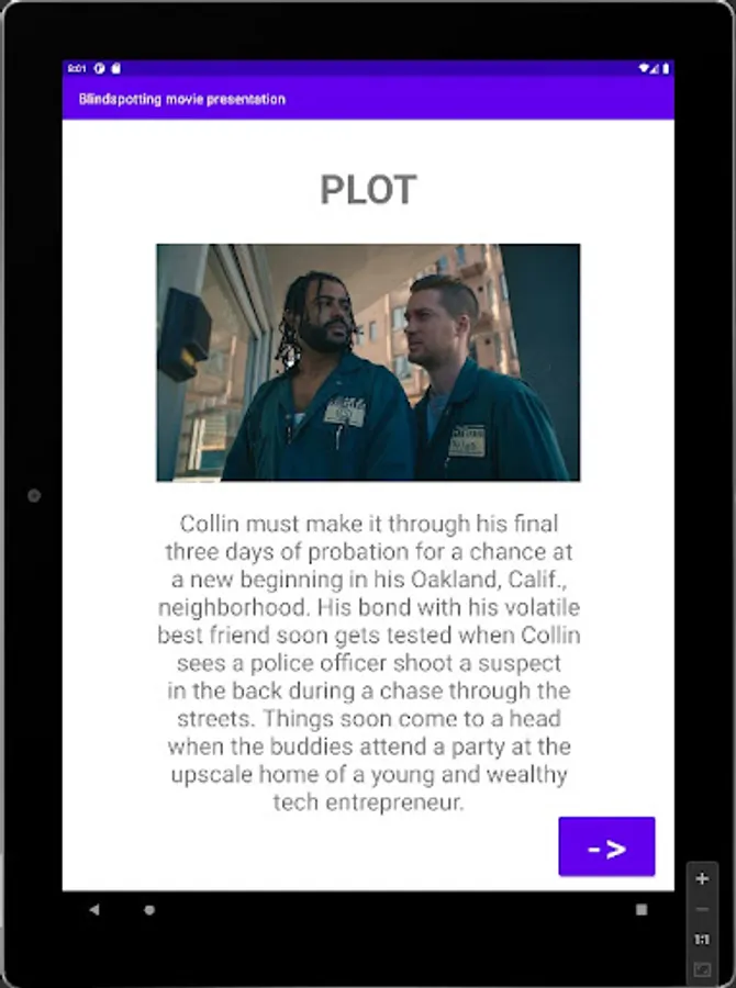 Blindspotting movie description, information taken from Rotten Tomatoes. Created by E. Mechovič.