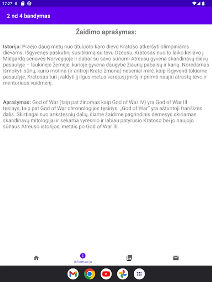 In the app you will learn everything about the game. Game information and story will be described. You will also see a trailer and many pictures about the game.