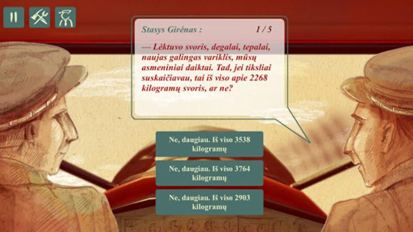Vytautas the Great War Museum's educational game Flight Over the Atlantic is used to introduce a great deed performed by two brave pilots, Steponas Darius and Stasys Girėnas, in 1933 -- the flight over The Atlantic Ocean in a plane called Lituanica. The pilots flew from New York to Kaunas and had a noble goal -- to bring fame to Lithuania. And they've accomplished it! The message about Lithuania and two Lithuanian pilots spread over the whole world and the flight was considered to be one of the most accurate at the time. By the distance flown - 6411 kilometers - it was the second furthest flight in the world, by flight time - it was fourth at 37 hours and 11 minutes. This flight marked another event in history of aviation, because it was the first time air mail was delivered from North America to Lithuania. Sadly, with 650 kilometers remaining until Kaunas, in Soldin, Germany (now around Mysliborz, Poland in a forest of the village of Pszczelnik) a catastrophe occured, owing to bad weather conditions and engine failure, in which the plane crashed and both the pilots were killed. Despite this, their memory is alive in various places in Lithuania and the wreckage of the original plane and other relics of the flight can be seen in The Vytautas The Great War Musem in Kaunas.