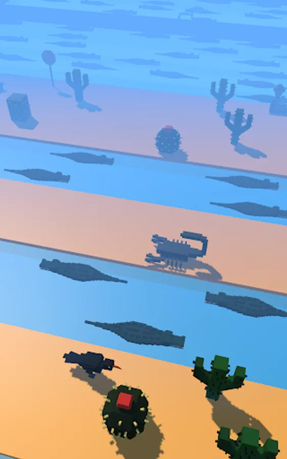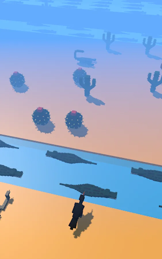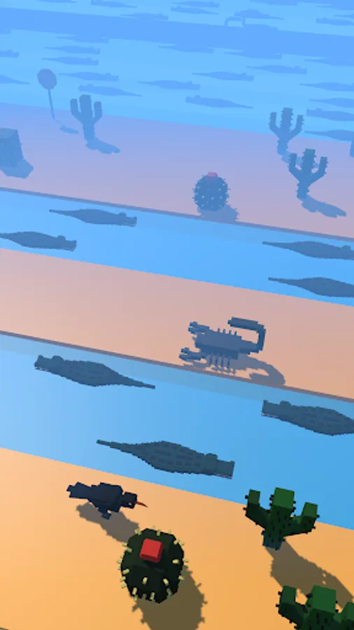 In "Desert Hop," you'll control a fearless character navigating the sandy terrain. Your mission? To move forward while avoiding deadly enemies like scorpions and crocodiles, as well as hazardous cacti. Time your jumps and movements carefully, or face the consequences of the unforgiving desert!