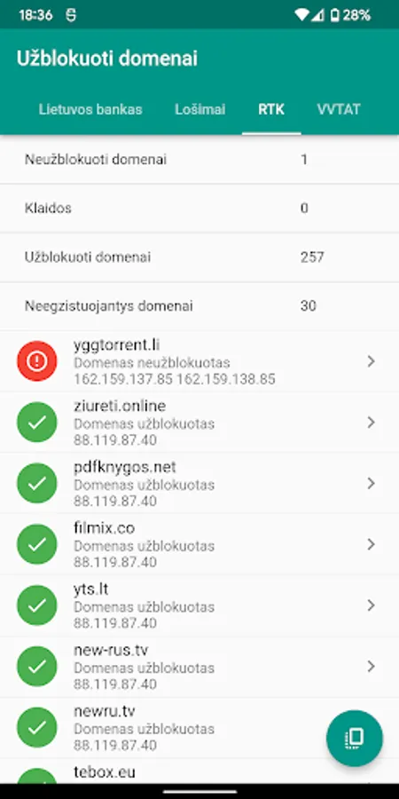 Mobile app that checks domains blocked by Lithuanian Internet service providers