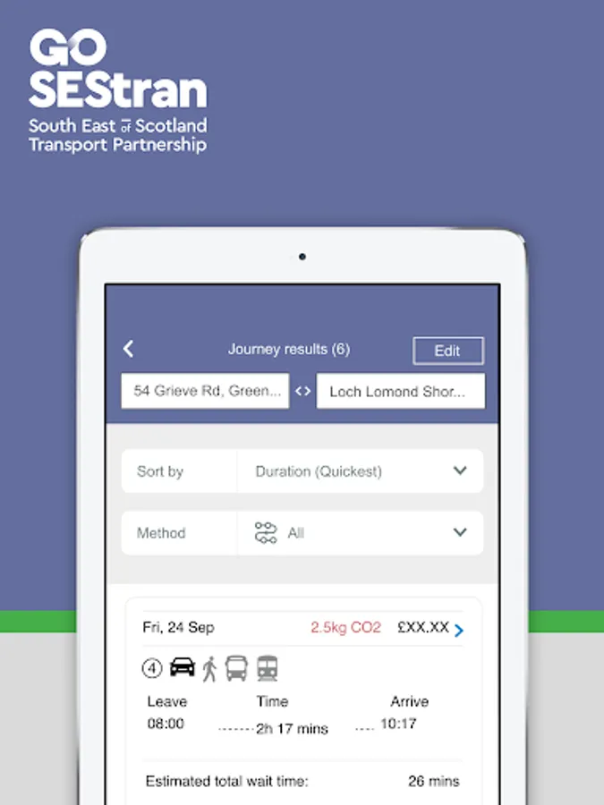 Find and compare transport options to and within the SESTRAN region: City of Edinburgh, Clackmannanshire, East Lothian, Falkirk, Fife, Midlothian, Scottish Borders and West Lothian.