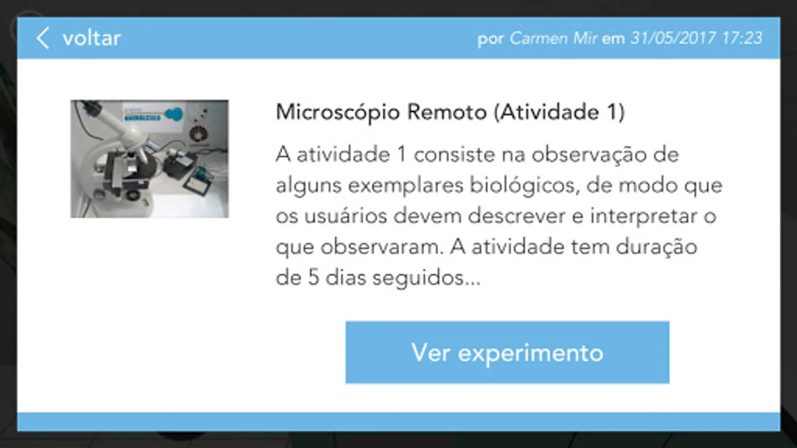 Remote Lab is an application that provides access to a remote laboratory biology that can be manipulated in real time, where performing experiments and observation of the diversity of microscopic life in a drop of water is possible, among other experiments!