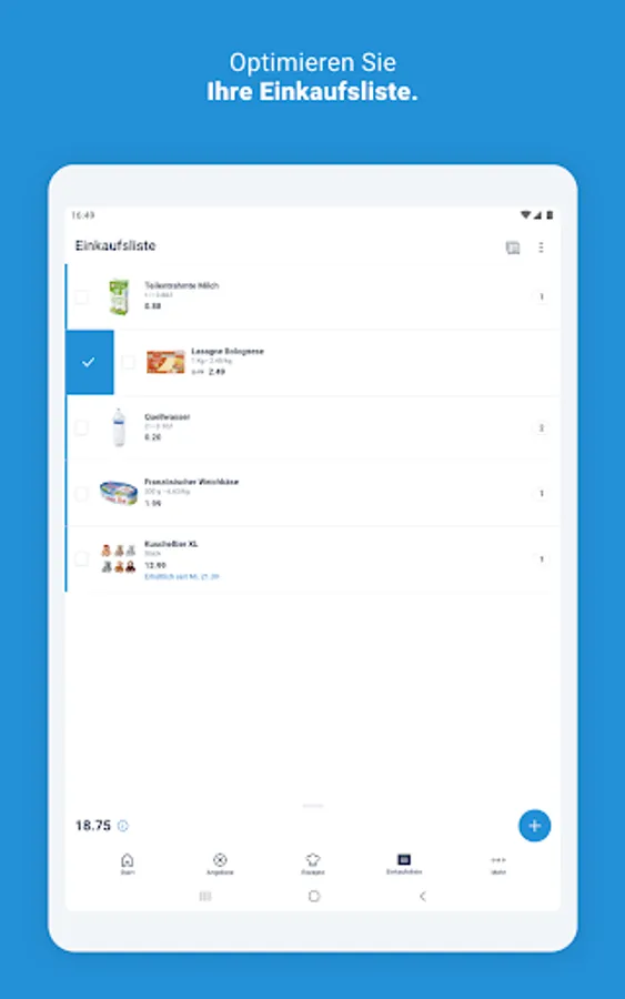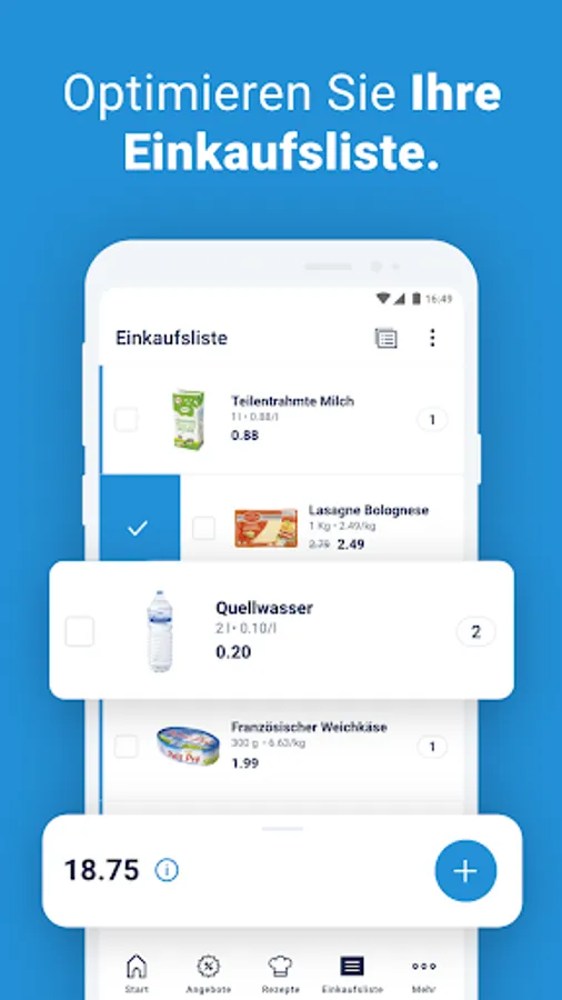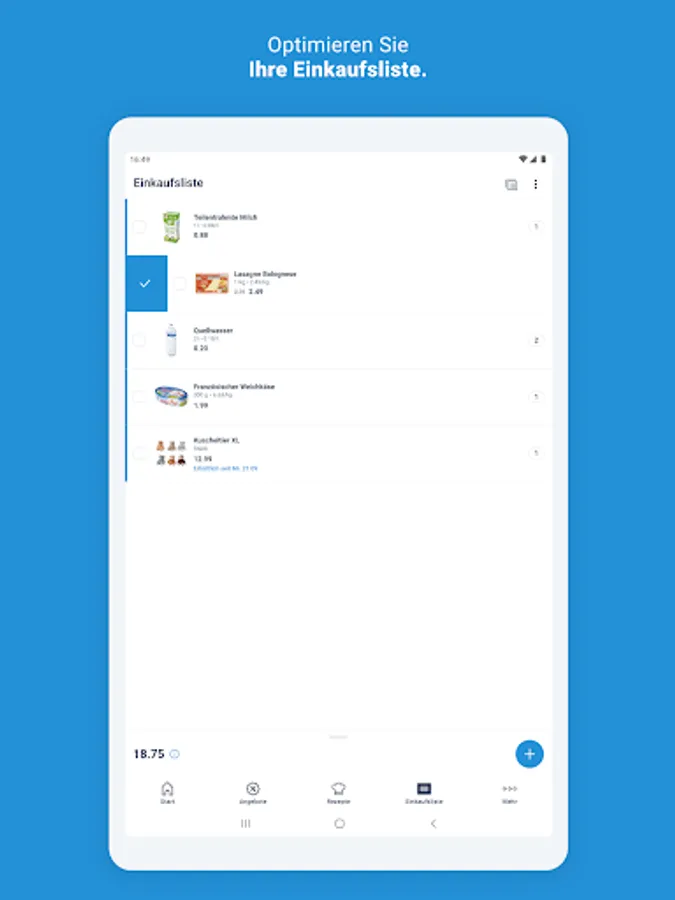 The shopping list in the ALDI app offers everything you need to plan your shopping perfectly. It shows you prices, current offers and pack sizes so that you can always find the best product. And thanks to the display of the total price, you always have an overview of the costs. Create one or more shopping lists for every occasion. And share your purchases with friends and family across devices.