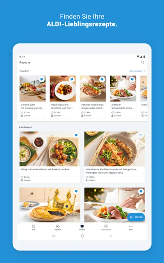 Find your new favorite ALDI recipes. There is something for every taste, whether grilling, baking or dessert, whether with meat, pizza, pasta or vegetarian and vegan. You can save your favorites and easily add all the ingredients to the shopping list. Of course you will find all products in your ALDI - at the original ALDI price.