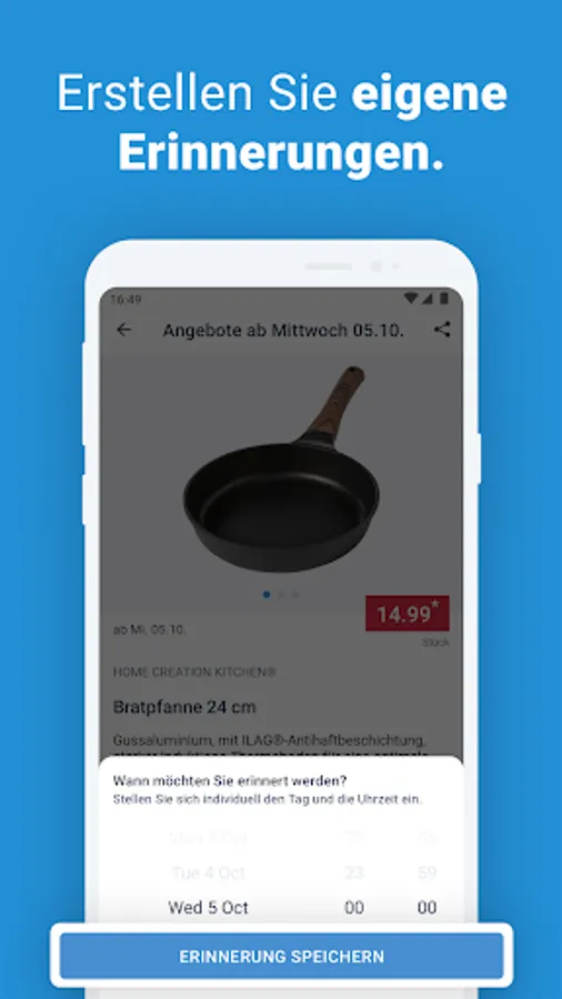 - Set custom reminders for offers