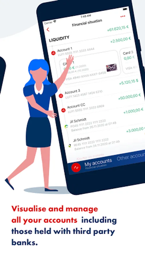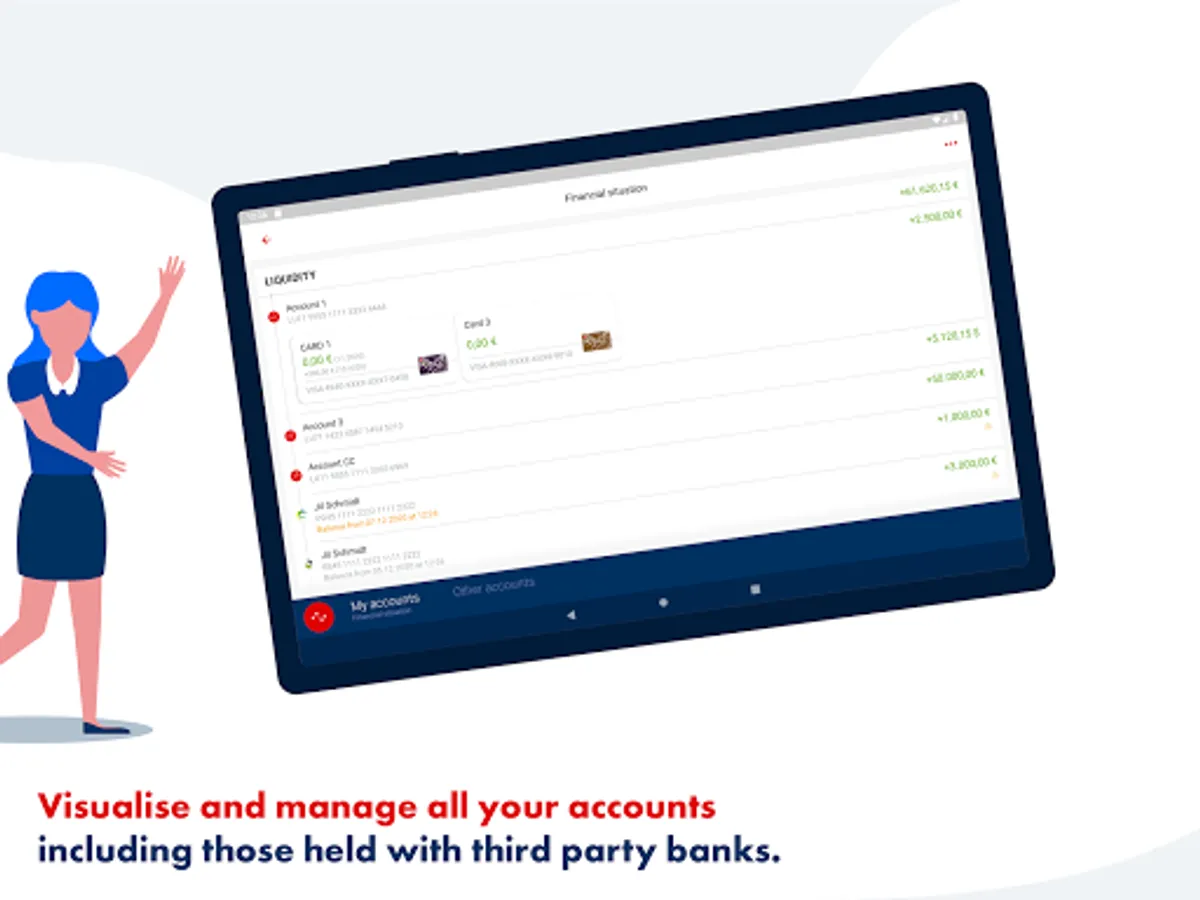 S-Net Mobile, the Banque et Caisse d’Epargne de l’Etat, Luxembourg (Spuerkeess)’s free mobile banking app allows you to:
