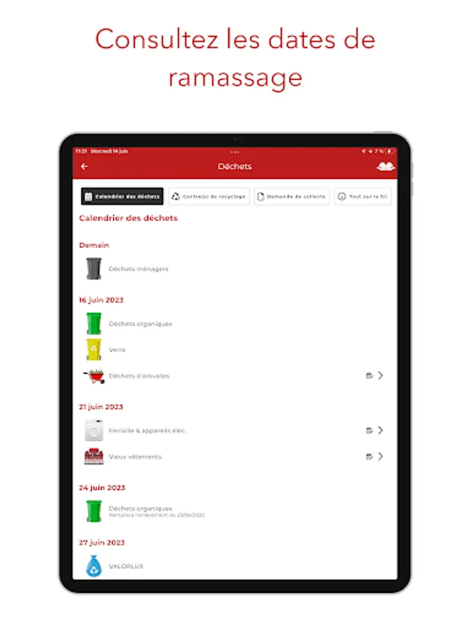 - Access the dates of trash pickups and receive a notification to remind you to take out the trash