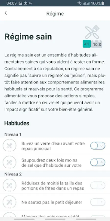 Acquire good habits thanks to a continuous flow of ideas, recommendations and personalized health advice