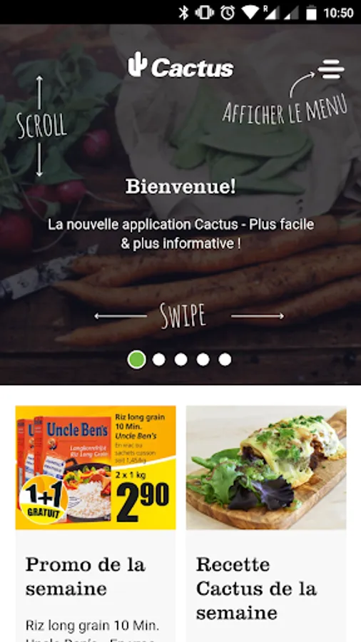 Dès maintenant aussi sur Android! Téléchargez notre application et retrouvez en un «touch» nos horaires, le magasin le plus proche, préparez votre liste de courses à n’importe quel moment ou encore, consultez le solde de votre Carte Client Cactus... rien de plus facile avec notre application gratuite.