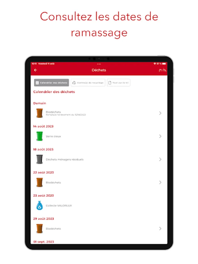 - Access the dates of trash pickups and receive a notification to remind you to take out the trash