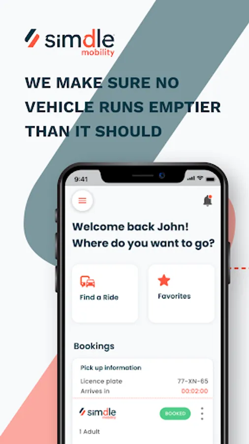 The Simdle Rider App allows users to book on-demand transportation, and manage future trips.