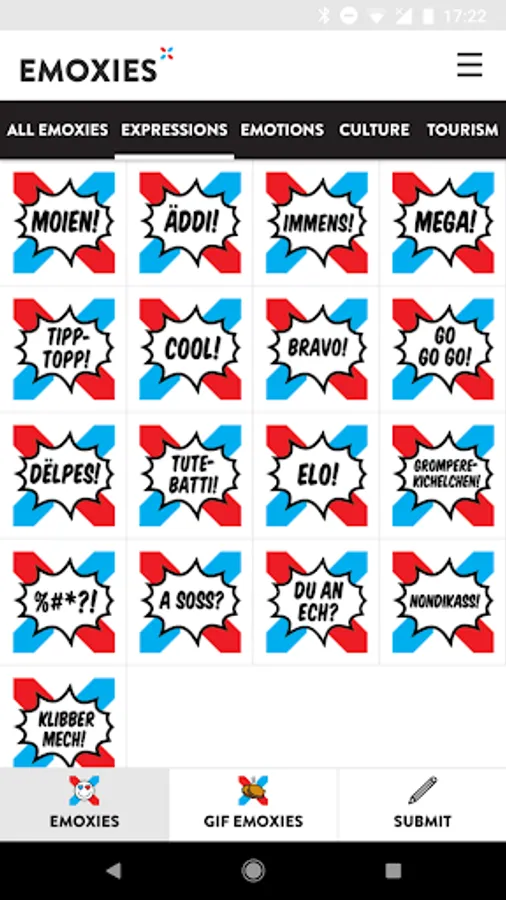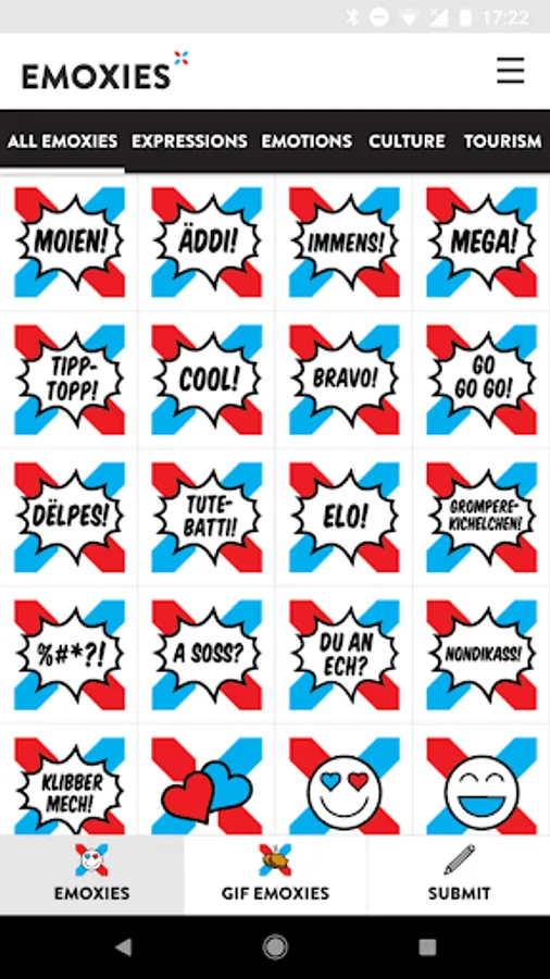 The Luxembourgish emoji interpretation is fun to use and can easily be integrated into your digital communication. Simply install the application and start sharing over 100 EmoXies with the world.