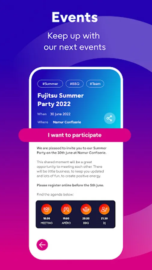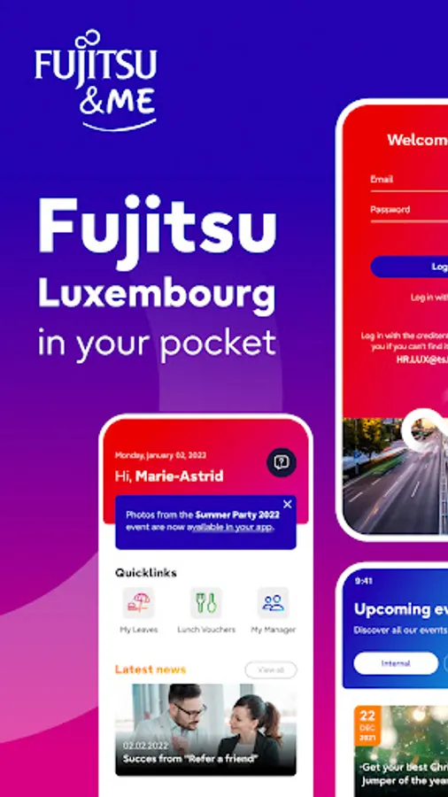 Upload the app and be up to date regarding all the news and events organized by Fujitsu Luxembourg