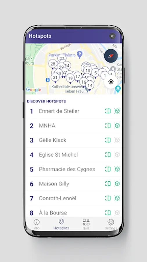 - Display on a map all the places in which the user can access virtual contents using the application.