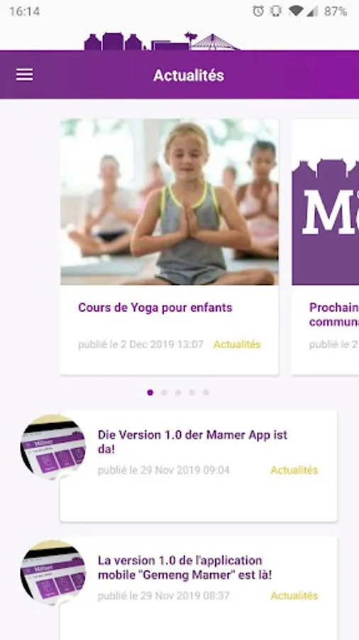 The mobile application of the municipality of Mamer allows you to see the city of Mamer. Even add your own event to the agenda!