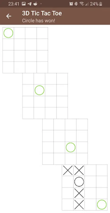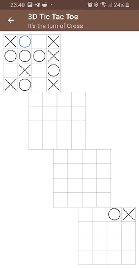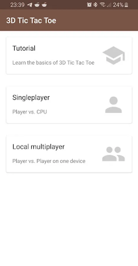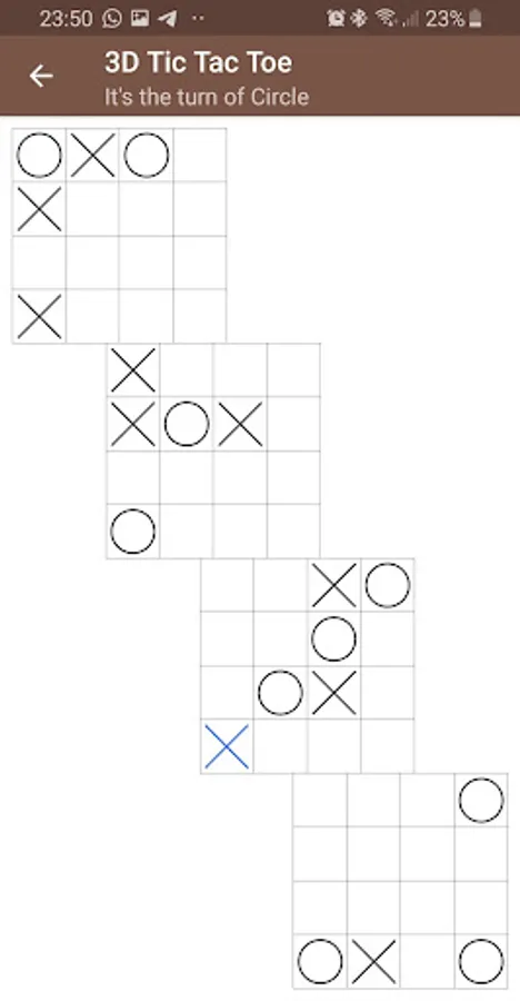 3D Tic Tac Toe takes tic tac toe to a whole new level. It is played in three dimensions and uses a 4x4x4 cube as game board. The cube is represented as four big layers, where the upper left layer represents the top and the lower right layer the bottom. The objective is to build a row of 4 fields in a line. This row can be on one layer of the cube or crossing multiple layers. 3D Tic Tac Toe comes with a tutorial, a single player and a local multiplayer mode. The perfect strategic entertainment on the go.