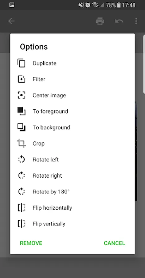 The purpose of this app is to fit pictures for printing. By installing the application, a new icon will appear in the "share" menu of your favourite gallery app. You can then resize and re-position the picture on a simulated paper before printing.