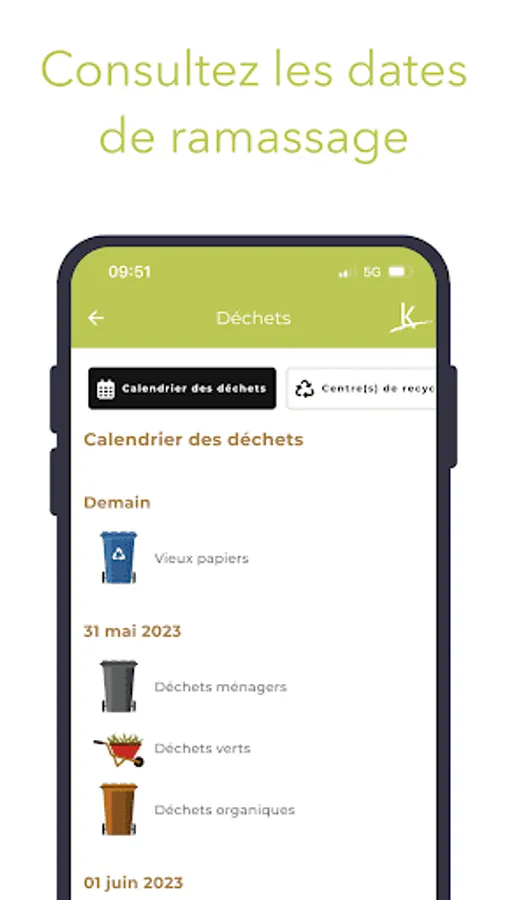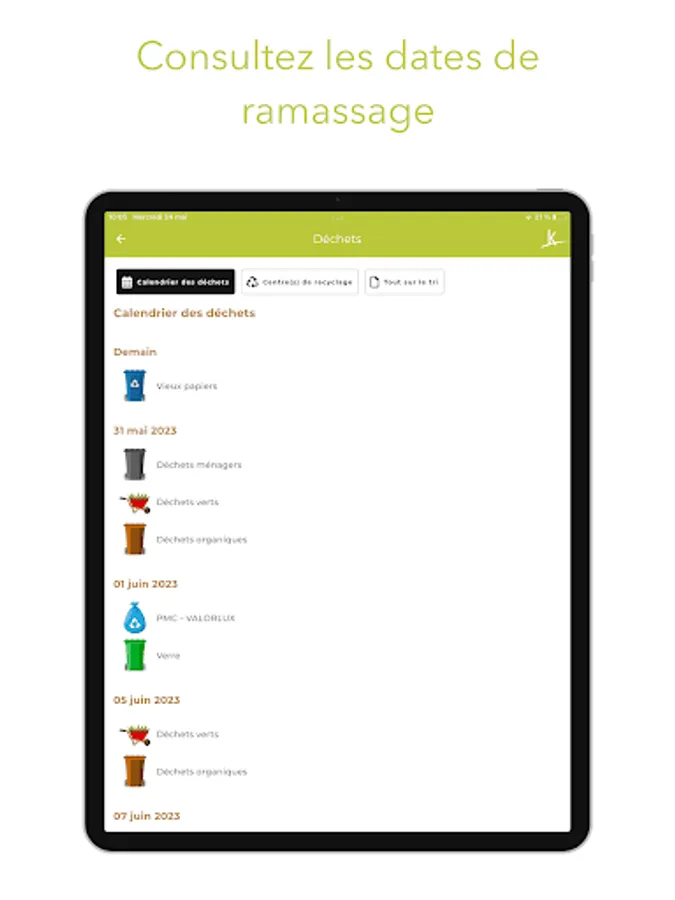 - Access the dates of trash pickups and receive a notification to remind you to take out the trash