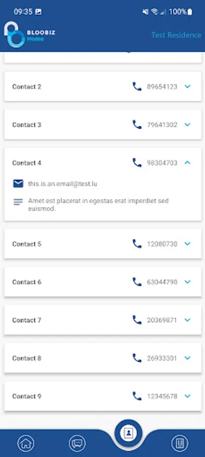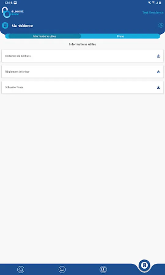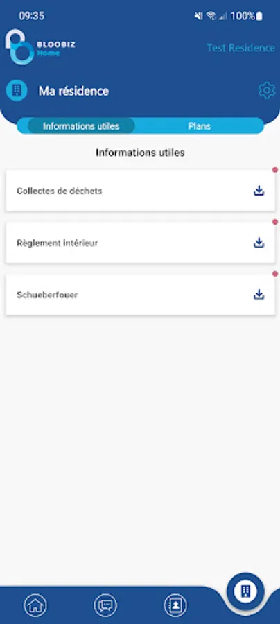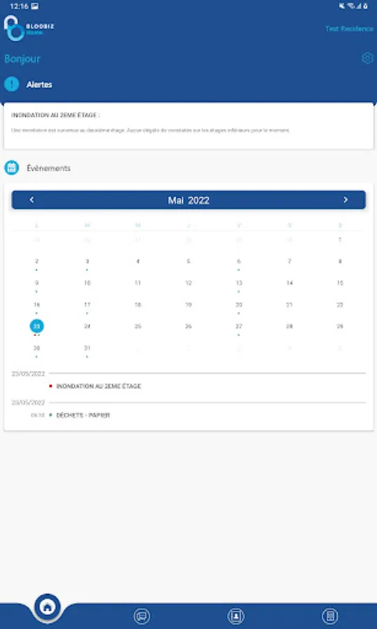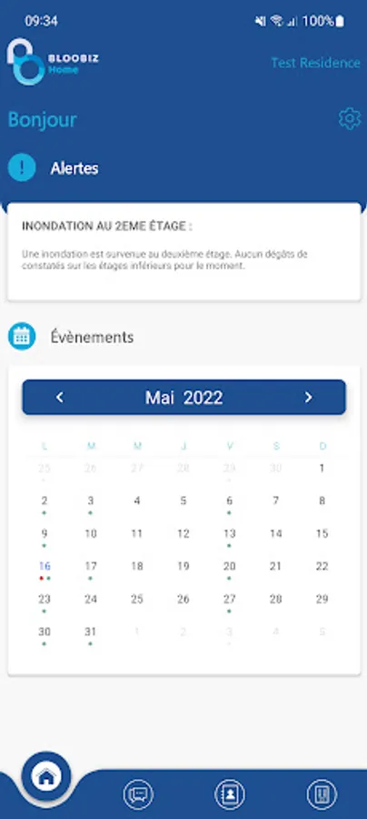 Bloobiz Home allows its users to access information about their residence. Events that may interest them are proposed to them and they are alerted when an important event or a problem occurs in their residence