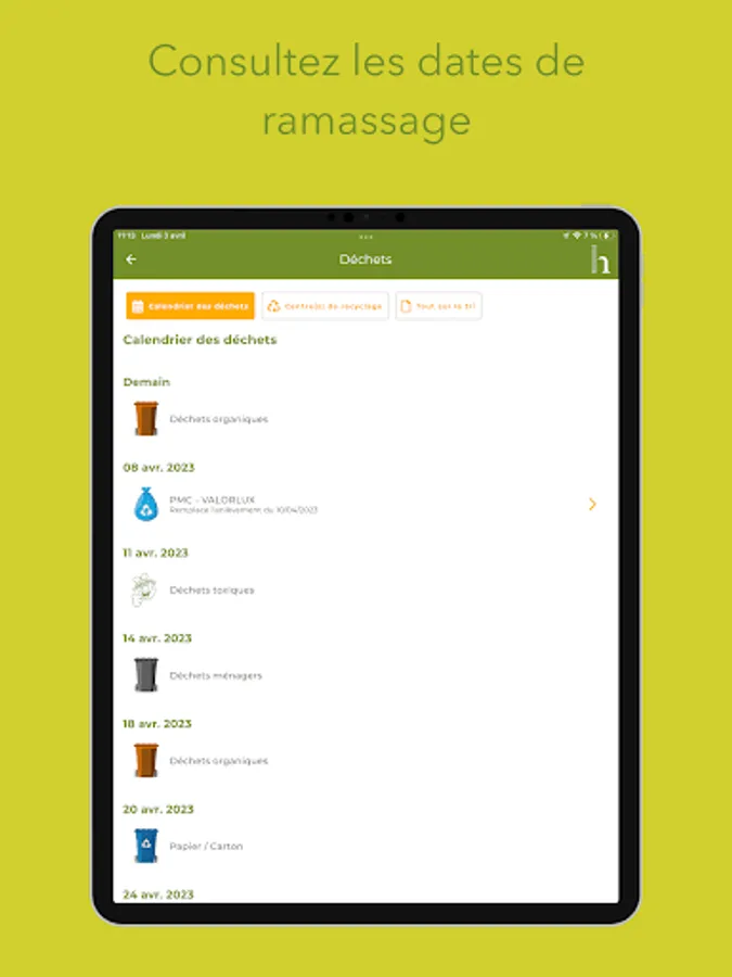 Access waste collection dates and receive a notification to remind you to take out the trash