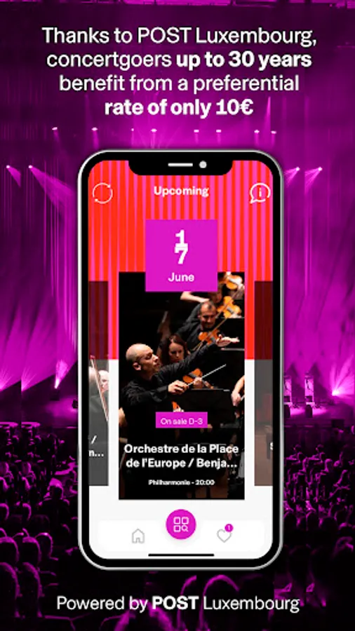 Powered by POST Luxembourg, the Phil30 concert tickets and app enable the next generation to easily explore music through live concerts. Thanks to POST, concertgoers up to the age of 30 (or aged 30 and younger) can easily benefit from a favourable rate of only 10 € per ticket.
