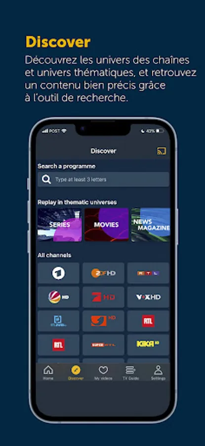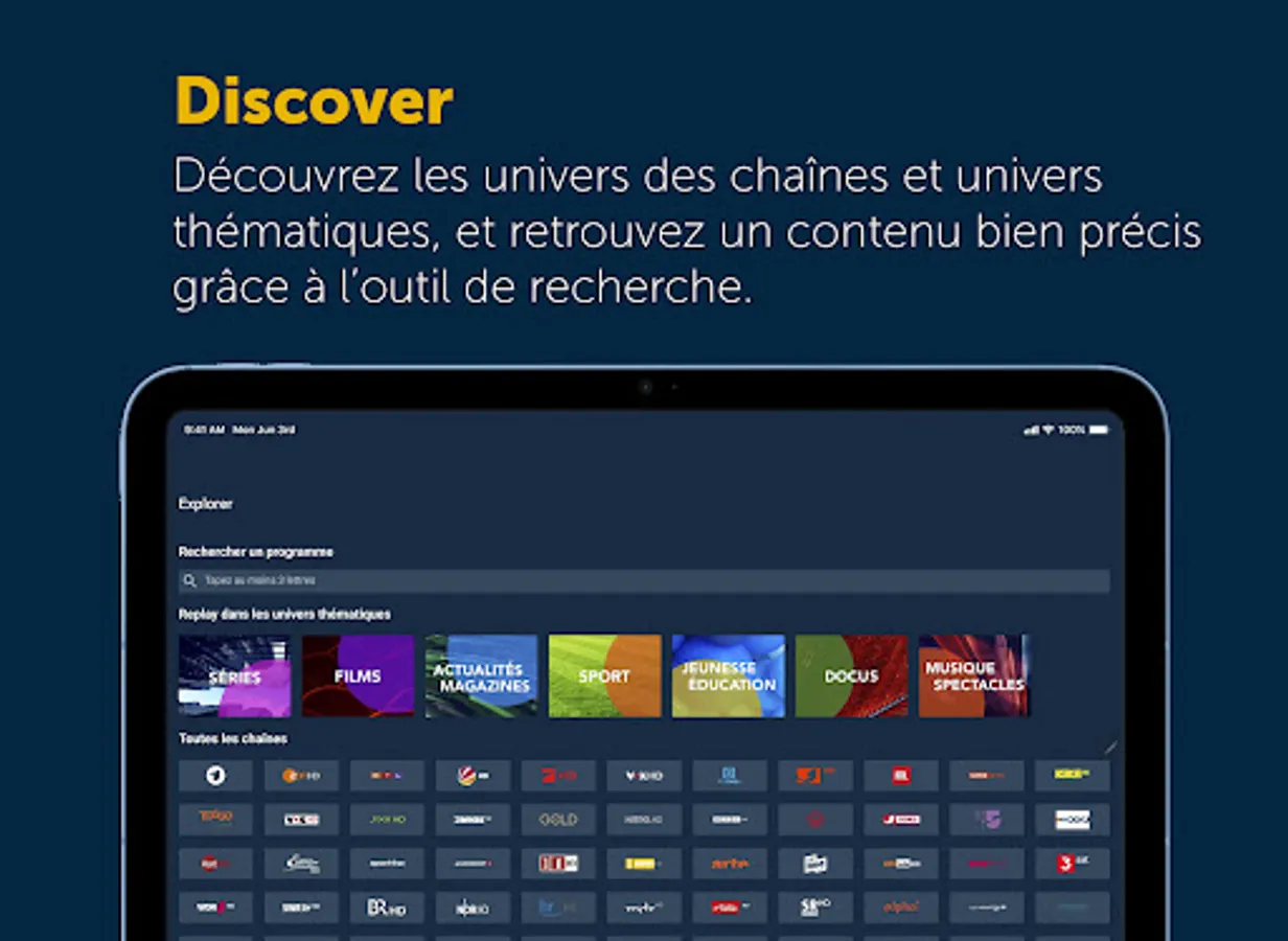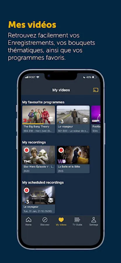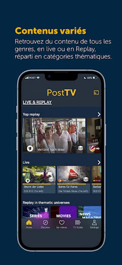 PostTV Go allows you to watch content from more than 120 channels. Thanks to this free application, you can record your programmes remotely and watch your shows and series in Replay.