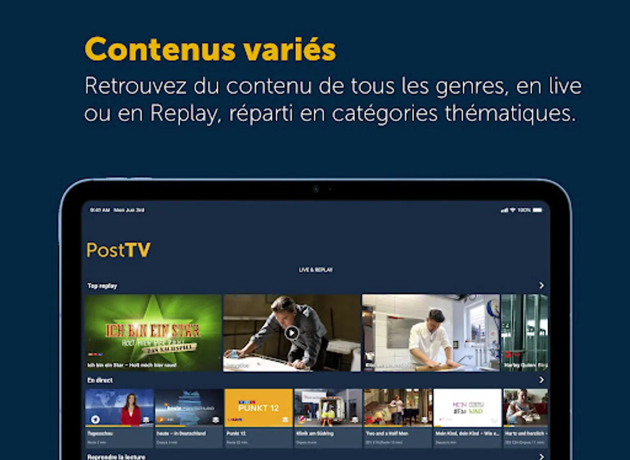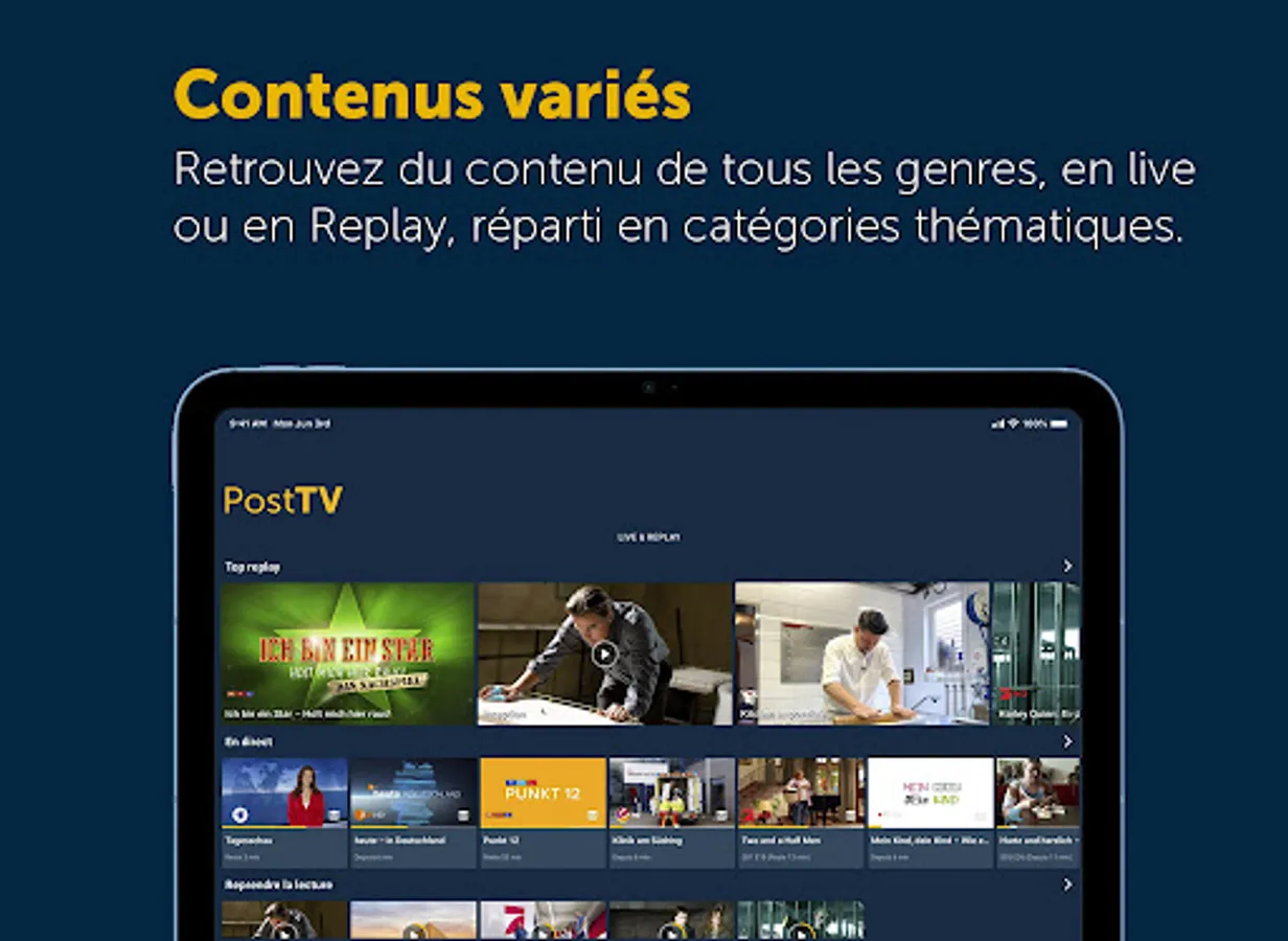 With PostTV Go, watch TV on your smartphone and tablet anywhere in Luxembourg and Europe.