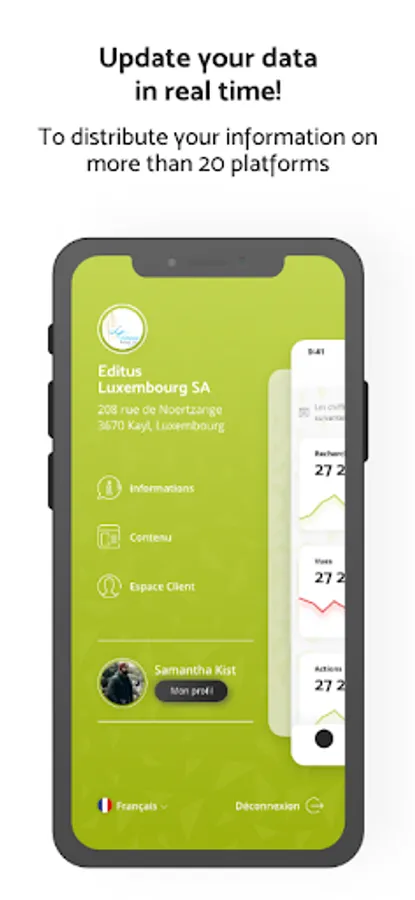 Editus myBusiness is your marketing dashboard. It is an access point for updating information about your company or your entire network of brands, which will then be distributed on more than 20 web platforms at the same time, including Editus.lu, the leader in local search in Luxembourg.