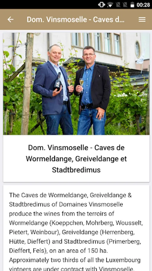 - Search among all producers of wines and sparkling wines of the Luxembourg Moselle with full information display including: address, photo, concise description, practical information such as opening hours for visitors.