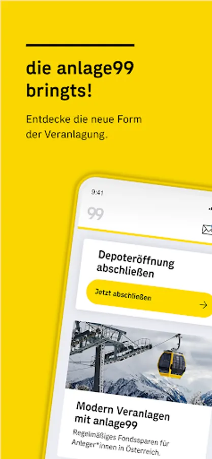 Anlage99 is a digital app that enables you to save in funds. The app is a partnership between bank99 and Simpel S.A. and contains numerous advantages for you: Free app, free account opening, individual savings plan or single deposits, flexible payments in and out, share your account view.