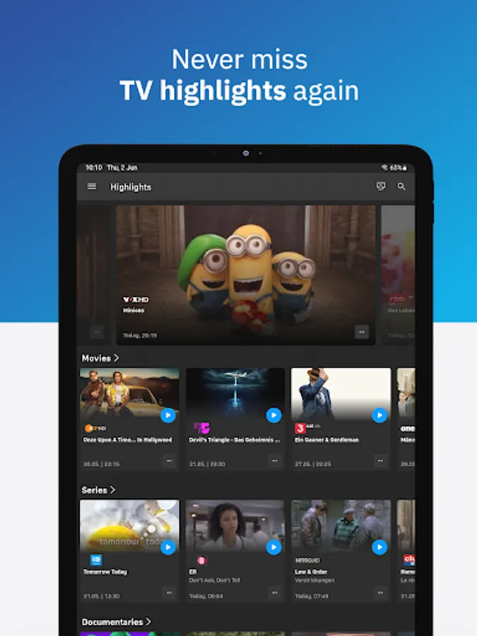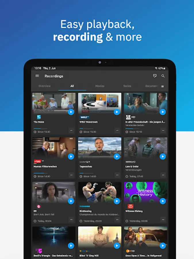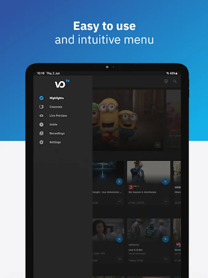 - Live TV on all devices: TV, smartphone, tablet, web browser