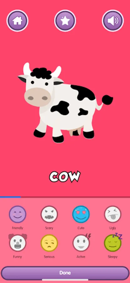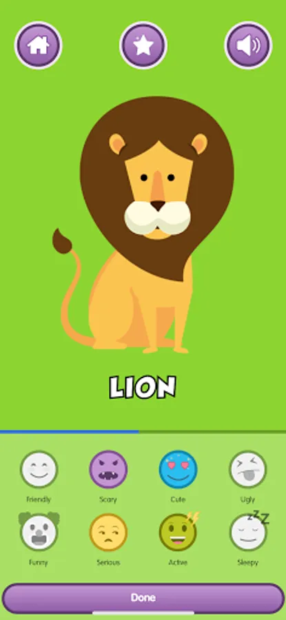 Kids will also use their emotions to learn about the animals by tapping on emojis like friendly, scary, ugly, cute, funny, serious, active, or sleepy.