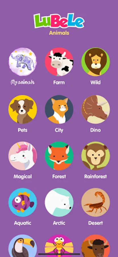 Split into 23 different animal categories, your child can tap on an animal's name to hear and learn the pronunciation or tap on the animal to see a playful animation and listen to the sound it makes.