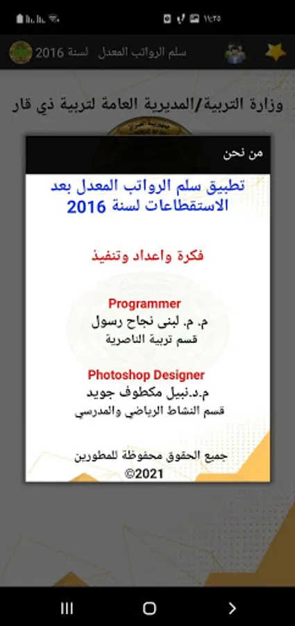 Programming was carried out by the programmer (Eng. Lubna Najah Al-Jabri) / Nasiriyah Education Department / General Directorate of Dhi Qar Education 2021.
