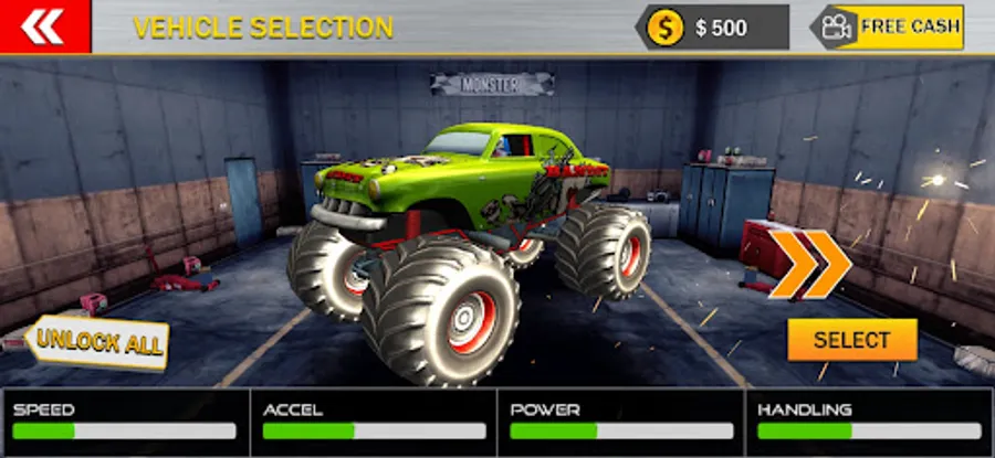 Compete in championships, perform crazy jumps, back flips and dominate your monster truck.