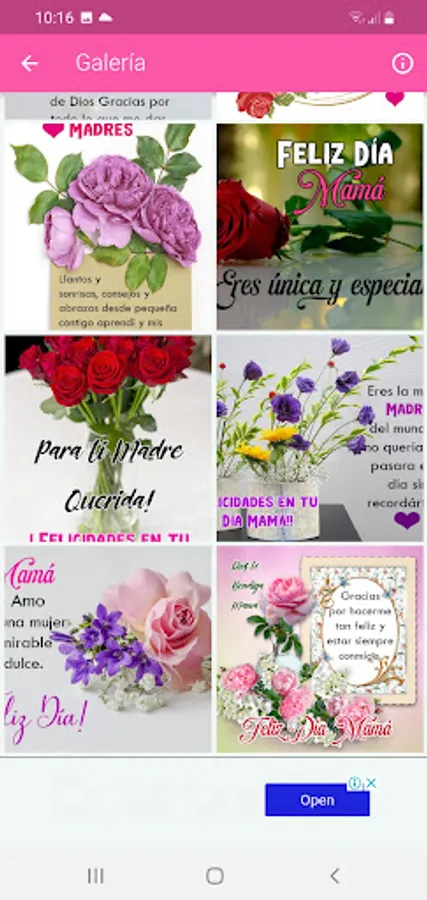 In this application you will find the best images, postcards and beautiful cards with mother's day phrases to tell her: mommy you are the best or happy day mom, thank you mom or congratulations mom. Because there is only one mother and mother's love is forever, give her a special gift and send her a phrase of love from a son or daughter and tell her how much you adore her.