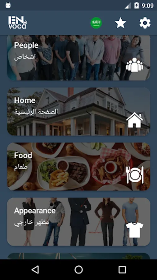 Welcome to Envoca, an Audio-Visual Application that supports you to learn essential English Vocabulary easier and more effective using pictures, sounds. All words was separated by specific topics, sub topics. Each word has description and example by English to understand. Especially we are supporting many different languages for each vocabulary so that you can learn it by your own language.