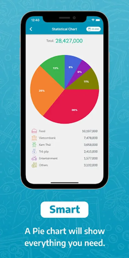 With your expense, MOSA supports you to track daily, monthly in transaction view. You can also view expense by category to see how much did you spend on a specific category. And a pie chart will show you the expense with percentage using colorful category images.