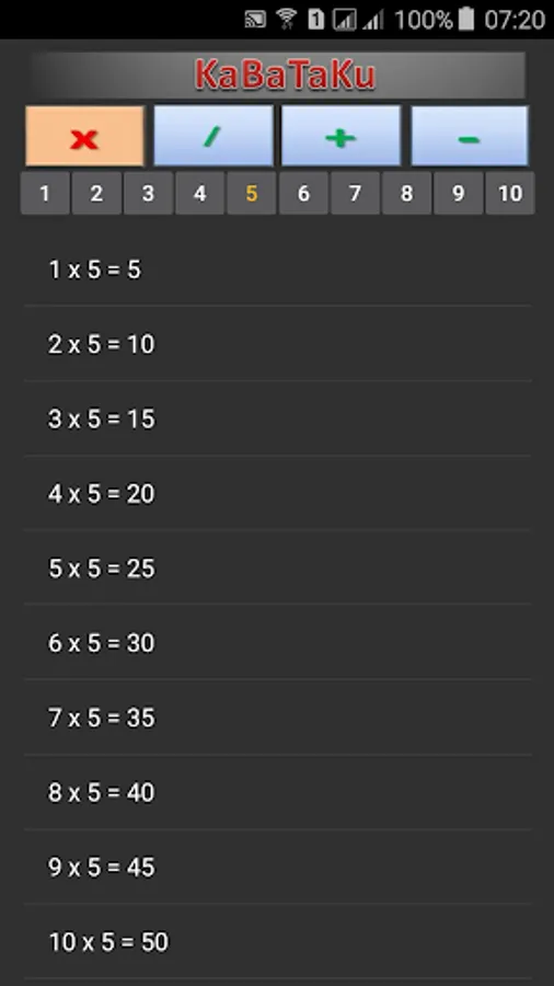 Multiplication, Division, Plus, Minus Table