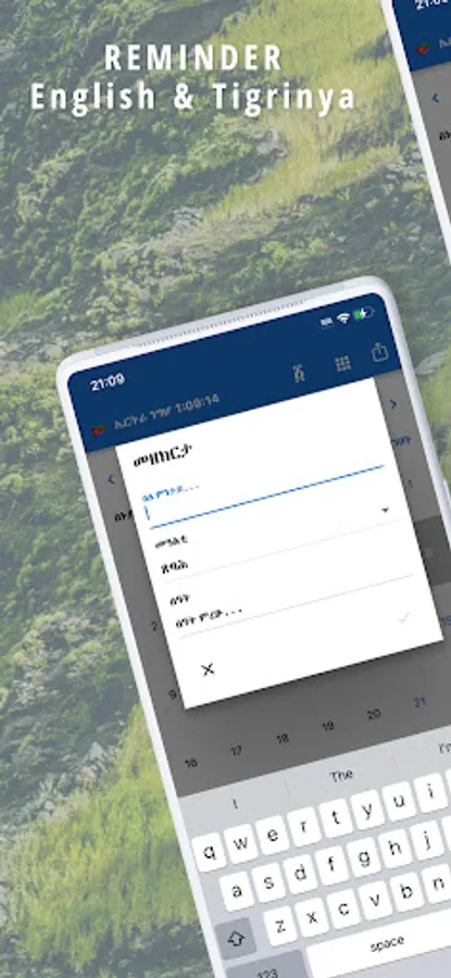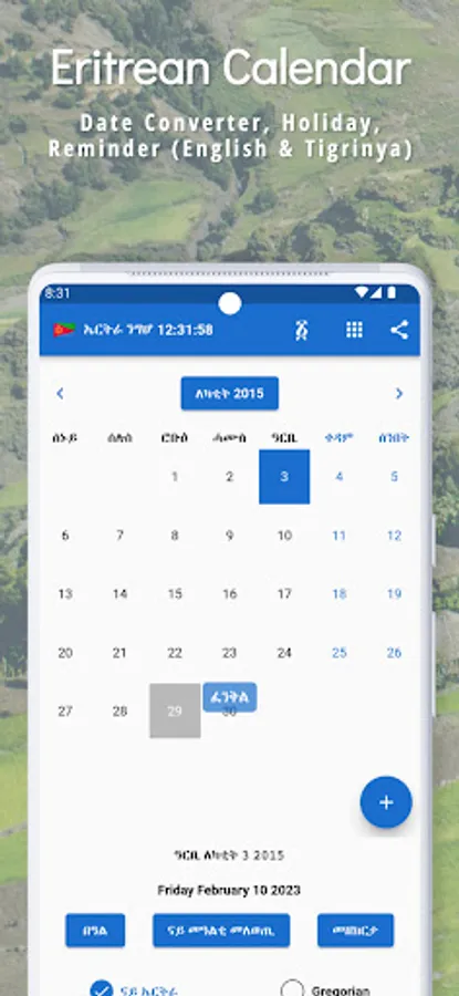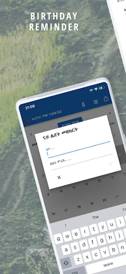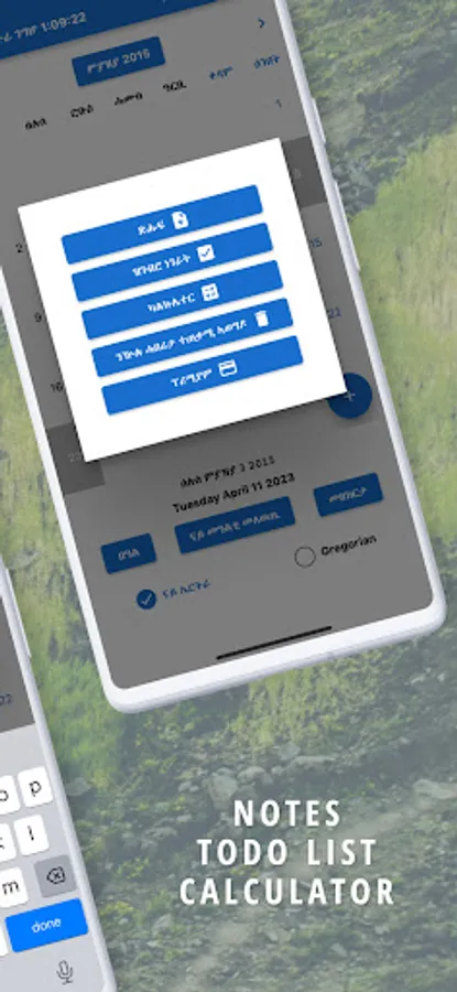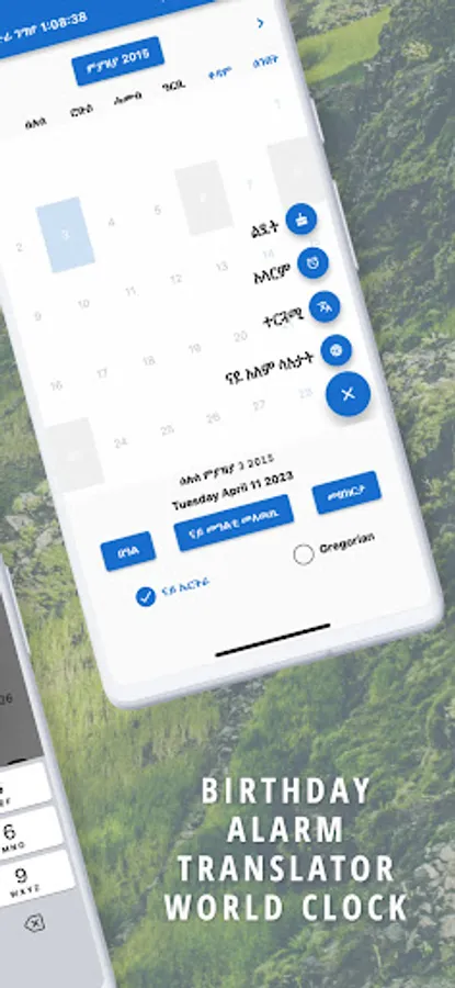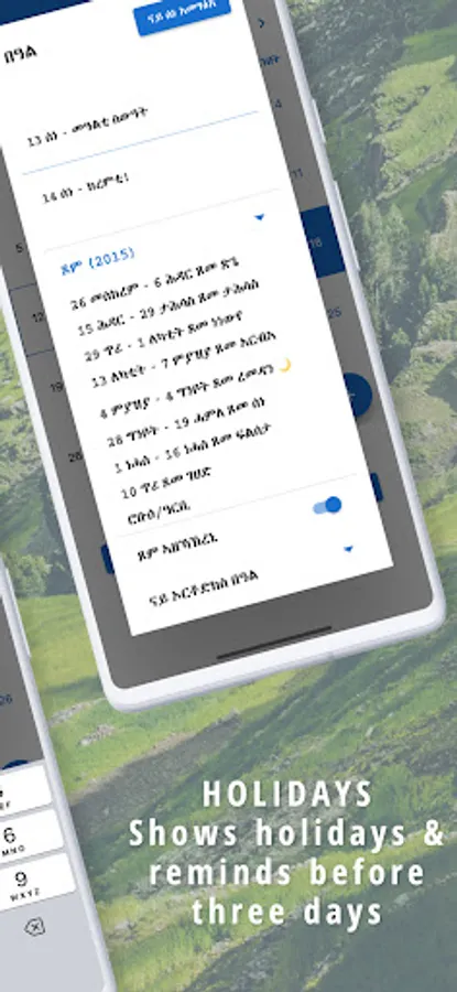 You can add Birthdays of your friends and families to get notified in advance. Convenient utilities such as a Calculator, Todo List, Notes, Amharic and Tigrinya Translator, World Clock and Alarm are included