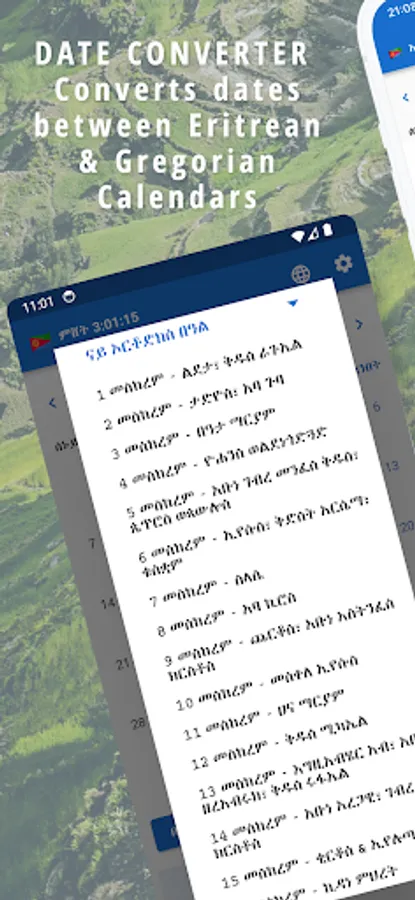 Our Calander also contains History of each Month's Origins in Amharic and an Eritrean Local Time clock that displays the local time in Eritrea.