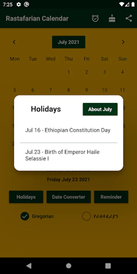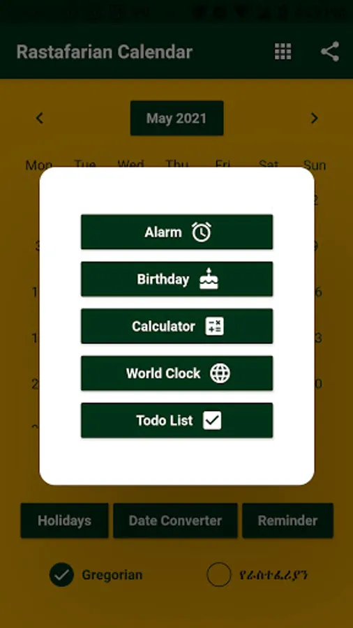 Our app has a date Converter to convert days from Ethiopian to Gregorian Calendar and vice versa.