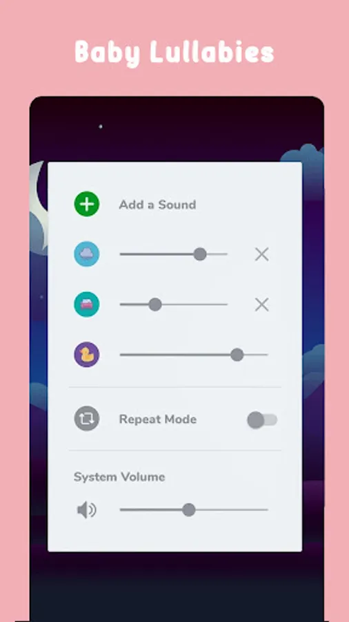 Lullaby Baby Sleep Sounds is an Android application designed to help parents soothe their babies to sleep with a variety of calming sounds and lullabies. The app features a range of sleep-inducing sounds, including white noise, nature sounds, and gentle lullabies, all carefully curated to help babies fall asleep quickly and stay asleep for longer periods.
