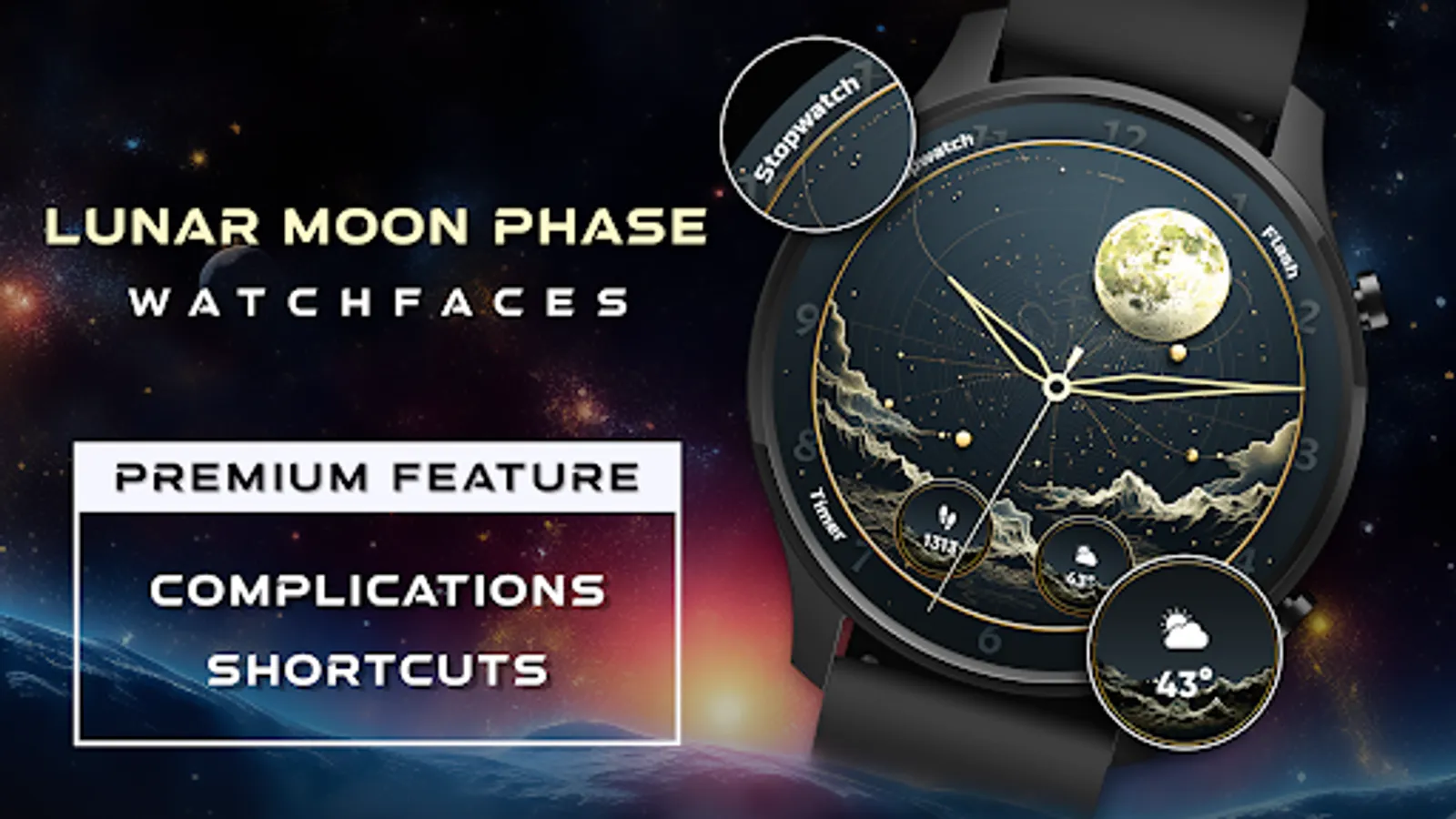 This application contains various moon-inspired watchfaces for Wear OS devices. If you are a lunar enthusiast then you are at the right place. Here you will get the perfect moon phase watch face designs for your Wear OS smartwatch. Easy to select the watch face and apply it to the watch display.
