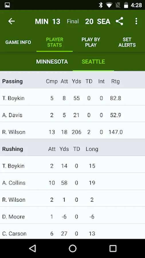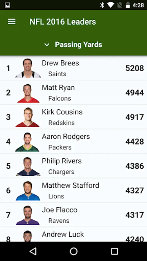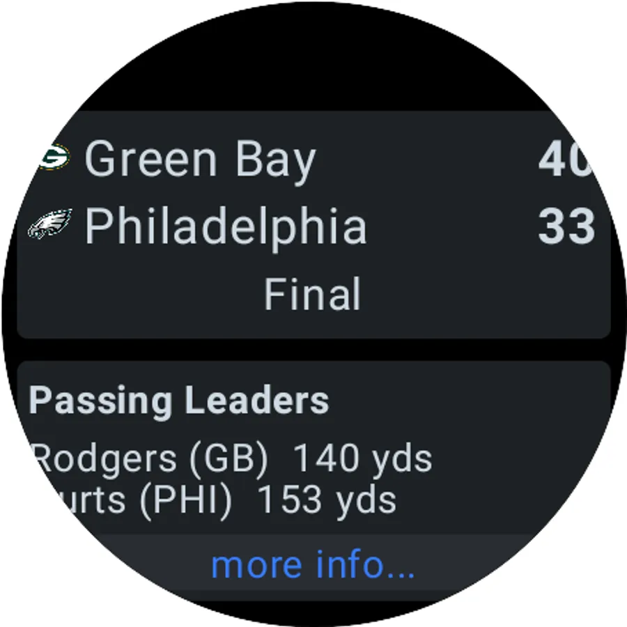 Get LIVE, FAST scores, stats and alerts for the NFL on your phone, tablet and our new Wear OS app!