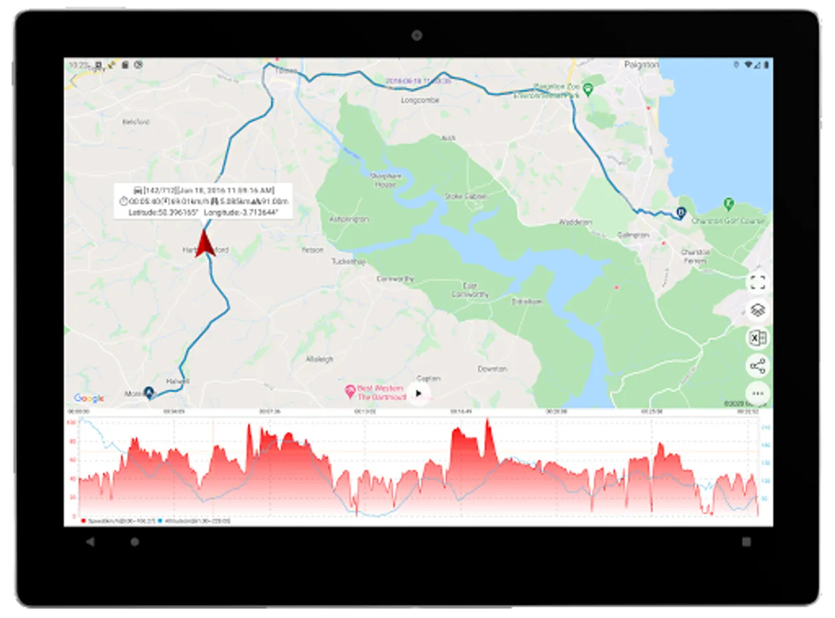 GPS Speed can track your speed,distance,time,location and also can get start time,time elapsed,avg speed,max speed,altitude...