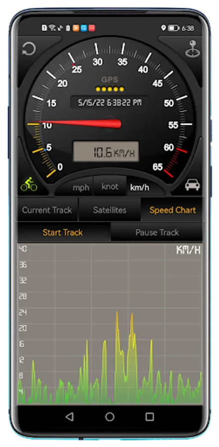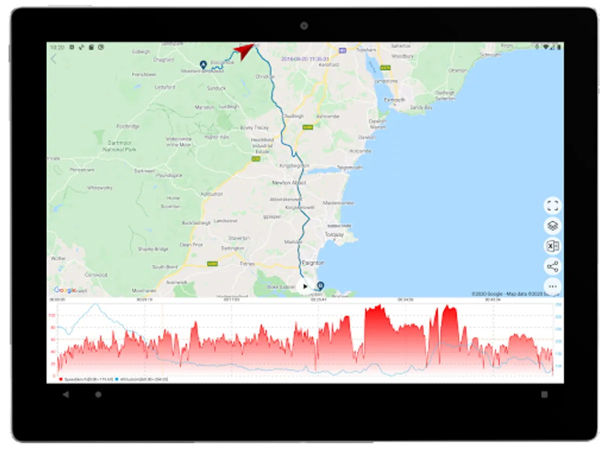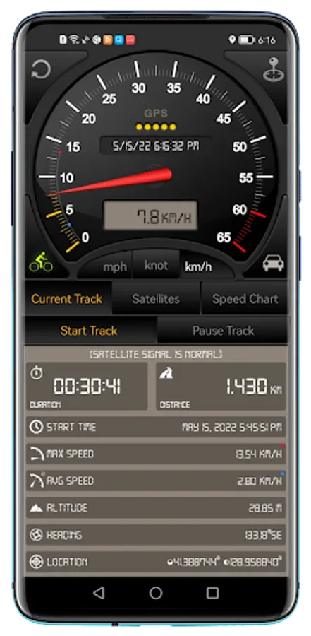 This app can track your speed,distance,time,location and also can get start time,time elapsed,avg speed,max speed,altitude...