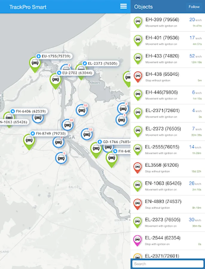 TrackPro Smart allows individual users and big corporations to locate their vehicles on map and monitor current vehicle status in list almost in realtime. All TrackPro users now can use TrackPro Smart and are able to see their vehicles online.
