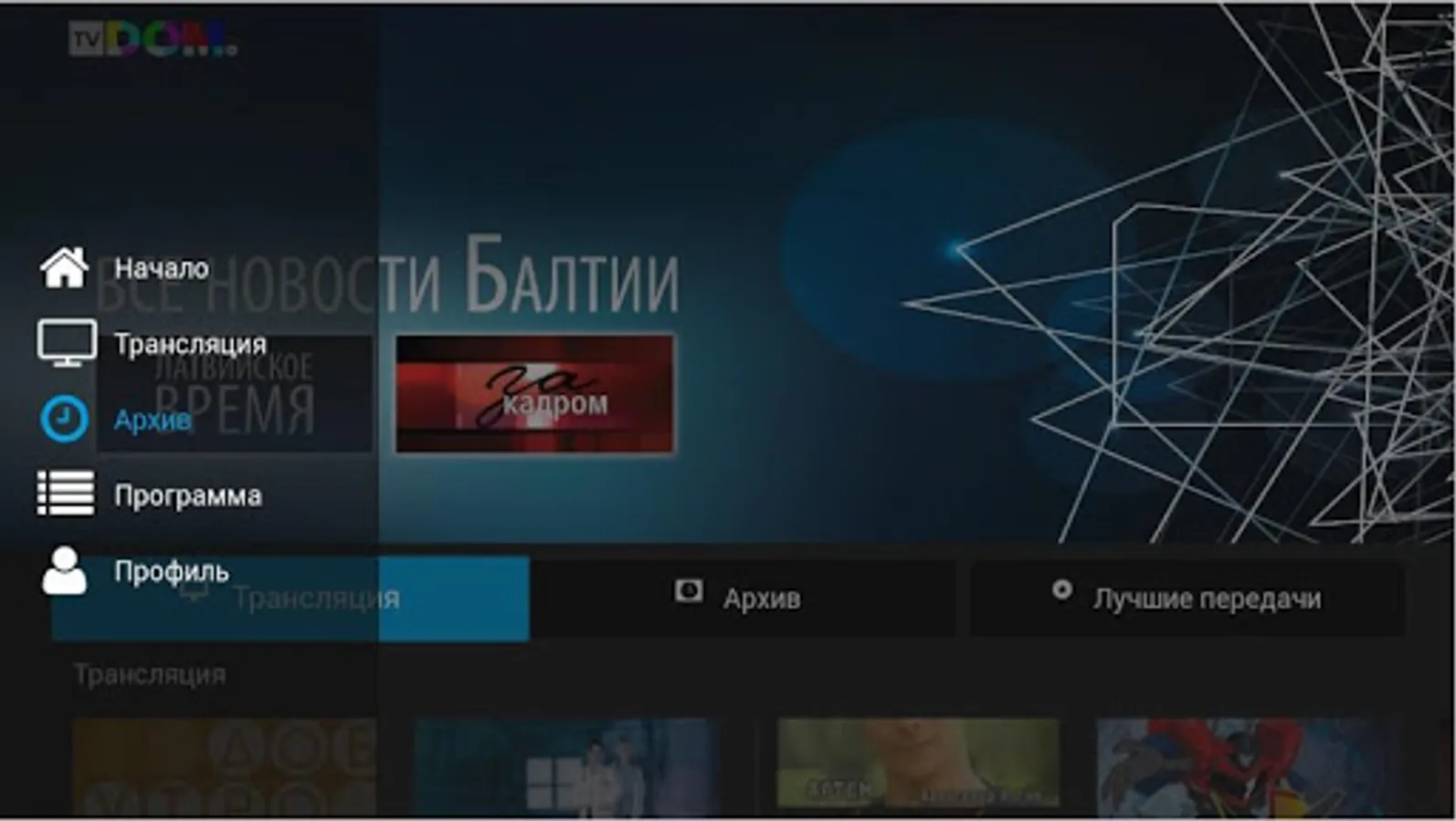TVDOM - TV portal tvdom.tv application for Android TV platform, which provides its users the ability to access the best TV channels and live broadcasts popular TV program archive.